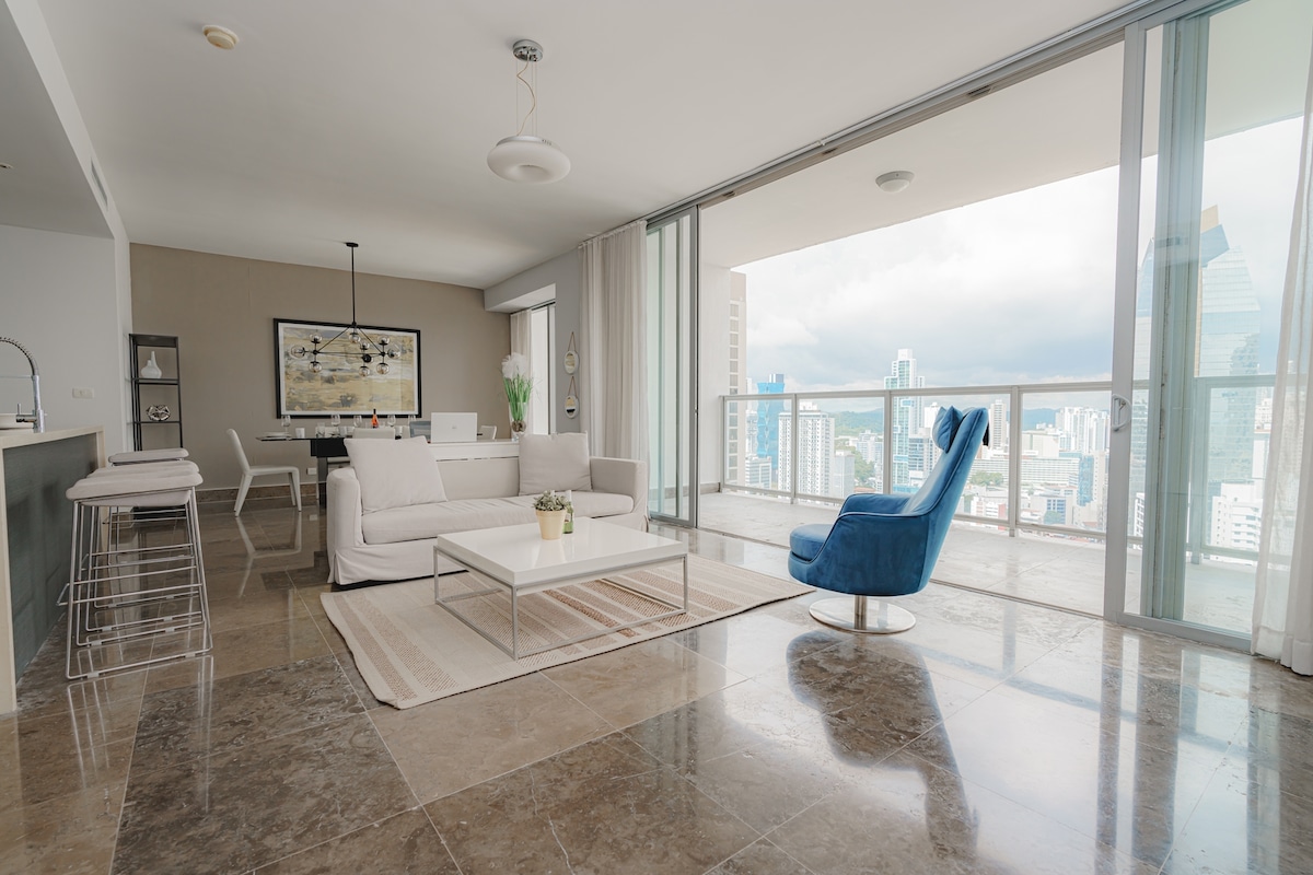 Elegante, cómodo, moderno y lujoso departamento ubicado en el mejor edificio de Panamá, con vista al mar desde el piso 36. Tiene las mejores áreas sociales diseñadas por el reconocido diseñador Philippe Starck. Completamente amoblado para convertir tu estadía en una experiencia única. El edificio tiene gym, piscina, áreas de juegos para adultos y niños, cancha de squash. 3 excelentes restaurantes y un supermercado. Se encuentra en una ubicación privilegiada en pleno centro financiero de Panamá.
