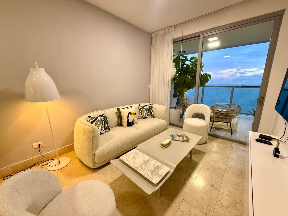 Escape to 63B YOO, a stunning 1-bedroom apartment in Panama City with breathtaking ocean views. This stylish apartment offers modern amenities, including a fully equipped kitchen, air conditioning, and a balcony to enjoy the sea breeze. Located in the vibrant Yoo Panama & Arts Tower, you'll have access to a gym, swimming pool, and spa. Explore nearby attractions like casinos, shopping, and museums, or simply relax and soak up the sun. Perfect for couples or solo travelers seeking a luxurious and