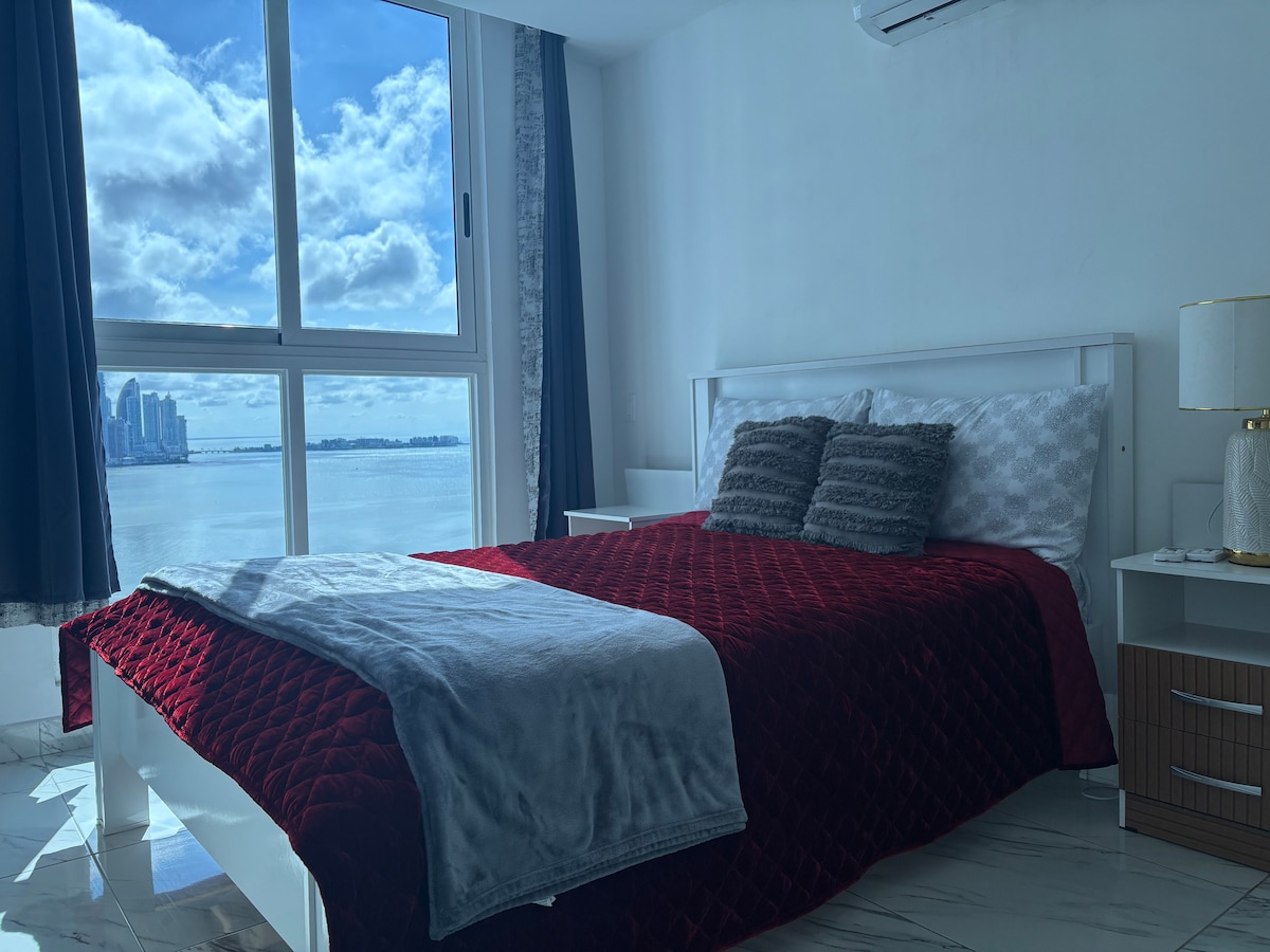 Wake up to breathtaking ocean views in this modern apartment on the exclusive Balboa Avenue. Enjoy an infinity pool, 360° sky lounge, gym, restaurants, coworking spaces, and unique entertainment options. Just steps away from the Historic Quarter, the Coastal Beltway, and the Seafood Market. Perfect for travelers seeking comfort, design, and Panama's most stunning views.