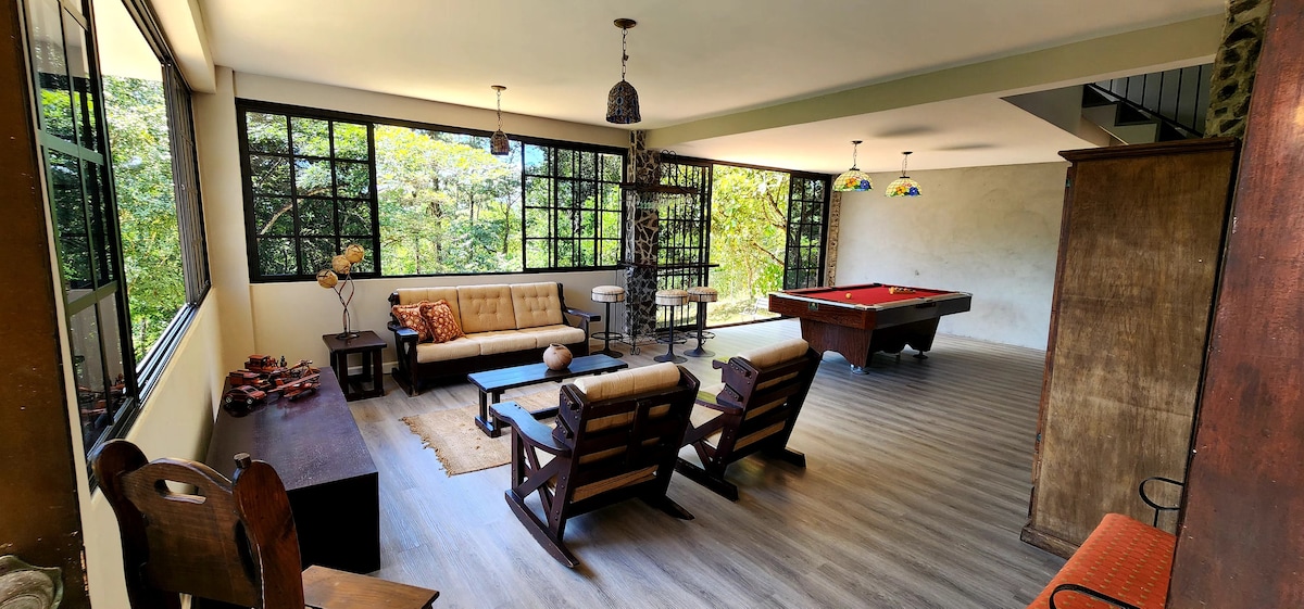 Disfruta de un retiro familiar en plena naturaleza, donde la tranquilidad te envuelve. Este acogedor alojamiento, rodeado de un hermoso jardín en el Parque Natural Metropolitano, te ofrece un escape único a solo 3 minutos del Albrook Mall y 5 minutos del centro. Despierta con el canto de las aves y la visita de ñeques, mientras te relajas en un ambiente exclusivo y lleno de vida. ¡La escapada perfecta para desconectar y disfrutar de la naturaleza con todas las comodidades!