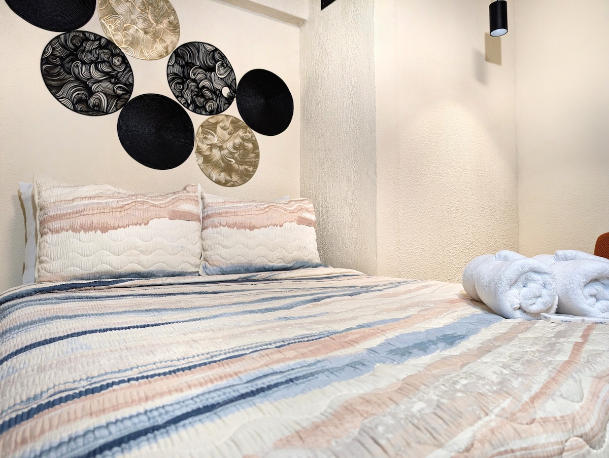Enjoy a modern, private studio (30m²) for up to 3 adults (1 queen bed and 1 sofa bed), just 7 km from Tocumen International Airport. Perfect for layovers, business trips, or relaxing before your next destination. Stay in a gated community with optional private parking. Conveniently located near shopping centers, restaurants, Don Bosco Metro Station, and Corredor Sur — only 20 minutes from the vibrant energy of Panama City. Transportation services are available upon request for a fee.