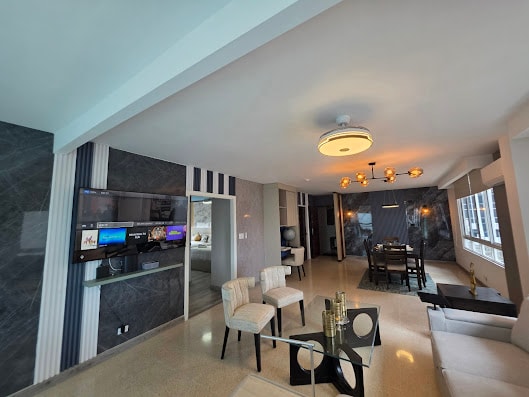 Apartamento moderno, lujoso y único, que cuenta con una ubicación espectacular en uno de los edificios mas lujosos de la Ciudad de Panamá, con todas las comodidades de un hotel, cerca de supermercados, farmacias, restaurantes, centros comerciales y mas El indudable carácter, lujo y confort que este apartamento emana, hace que al finalizar la estadía sea realmente difícil irse. Con su envidiable vista al mar los huéspedes se pueden desconectar, relajarse y saborear este destino mágico