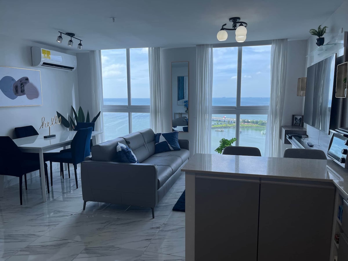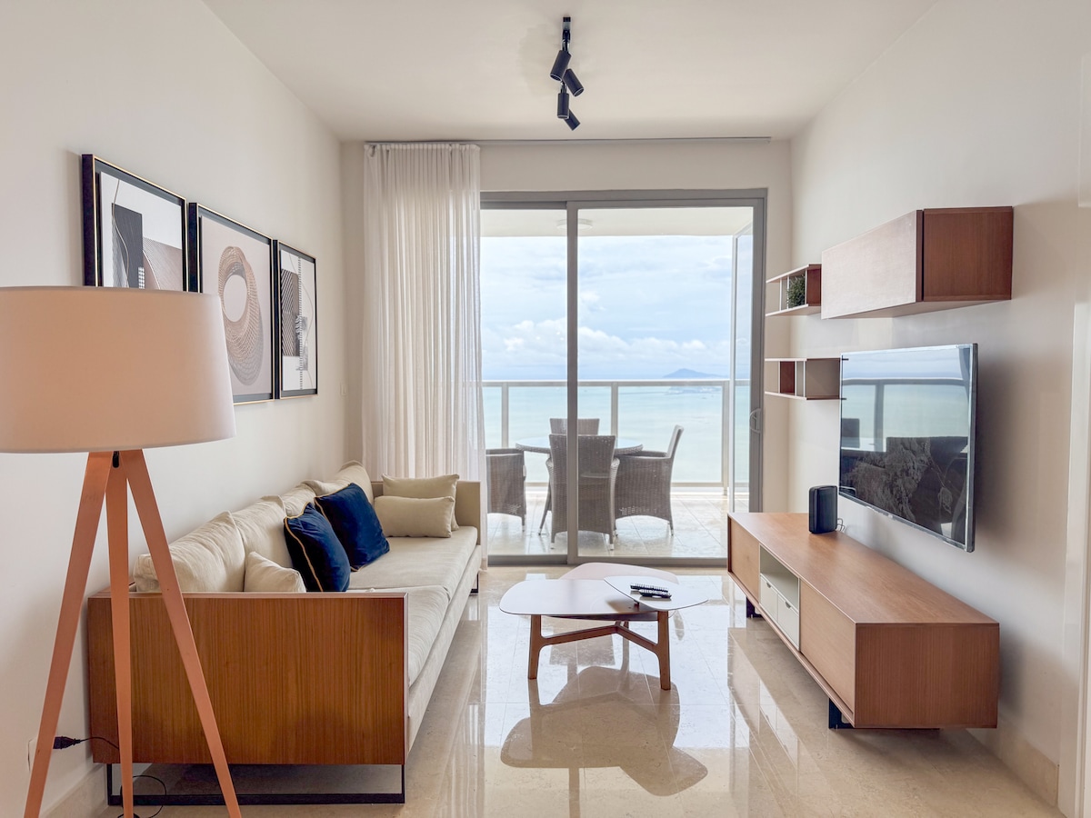 Moderno apartamento de lujo en la Cinta Costera, ideal para ejecutivos, parejas o familias. Dormitorio amplio con vista al mar, baño privado, cocina y electrodomésticos. Diseño elegante con seguridad 24/7, gimnasio, piscinas, 4 restaurantes, bar y Sky Lounge. Ubicación privilegiada cerca de supermercados y excelente oferta gastronómica en Ciudad de Panamá. PANAMA