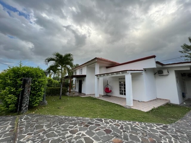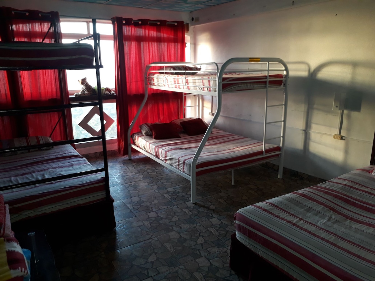 Hospédate en esta casa de campo ubicada a 30 minutos de la carretera panamericana y con vistas a las montañas de Panamá Oeste y Coclé. Esta casa tiene piscina, área social, cancha de fútbol y estacionamientos privados. Tiene capacidad para 10 huéspedes y cuenta con los servicios básicos, cocina bien equipada y asados a gas, además de WiFi, TV y aires acondicionados en las habitaciones. Se ubica pocos minutos de senderos en las montañas de Panamá Oeste y playas del Pacífico Panameño.