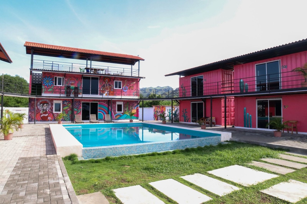 Disfrute de una estancia única en la Colibrí Suite, con piscina semi-privada, dentro de un exclusivo complejo de golf y playa en Coronado. Equipada con cama king, sofá cama, TV, servicio a la habitación, Wi-Fi, y baño privado, es perfecta para relajarse. Los huéspedes disfrutan de piscinas, restaurantes, gimnasio, spa (cita previa), golf de 18 hoyos (solo paga el carrito), canchas de tenis y pickleball, y un club de playa privado. Ideal para una escapada serena o unas vacaciones activas.