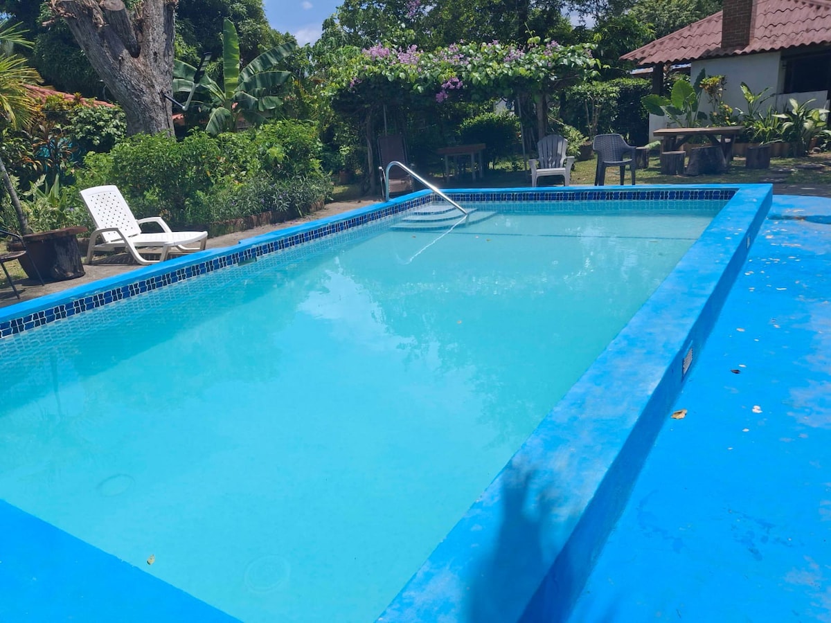 Este alojamiento único tiene mucho espacio para que disfrutes con los tuyos. ya sea en grupo de amigo o porque no una velada romántica. ven y disfruta un lugar inigualable. casa full amoblada piscina cuartos con varias camas y aires comedor sala familiar cocina completa den para ver pelicula amplio jardín área de barbacoa estacionamientos para 4 carros