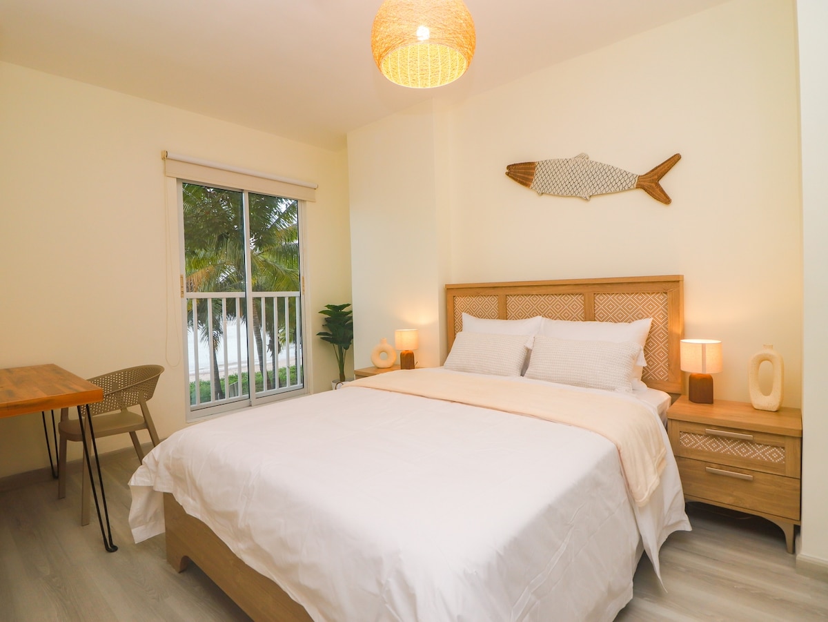 Cozy beachfront apartment fully furnished and equipped just 30 kilometers from Panama City. The apartment has the best residential location as it is steps from the beach club (swimming pool, slides, sand volleyball court, the beach, etc.). When staying with us we include complimentary access to the club where you can enjoy all its amenities. The club opens Tuesday through Sunday from 8am to 6pm, the slides close at 5pm.