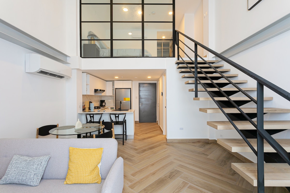 This historic 1941 loft is located at the entrance of Casco Viejo where you’re steps from the fish market and all the cool cafés, rooftops, and trendy restaurants that make up the neighborhood. Fully equipped kitchen, washer/dryer combo, 1.5 bath, bedroom on 2nd floor, 2 balconies + communal rooftop, projector w/Netflix, fast internet, and great AC. You’re also directly in front of the Cinta Costera park for running, biking, tennis courts. Near local airport for flights to Bocas!
