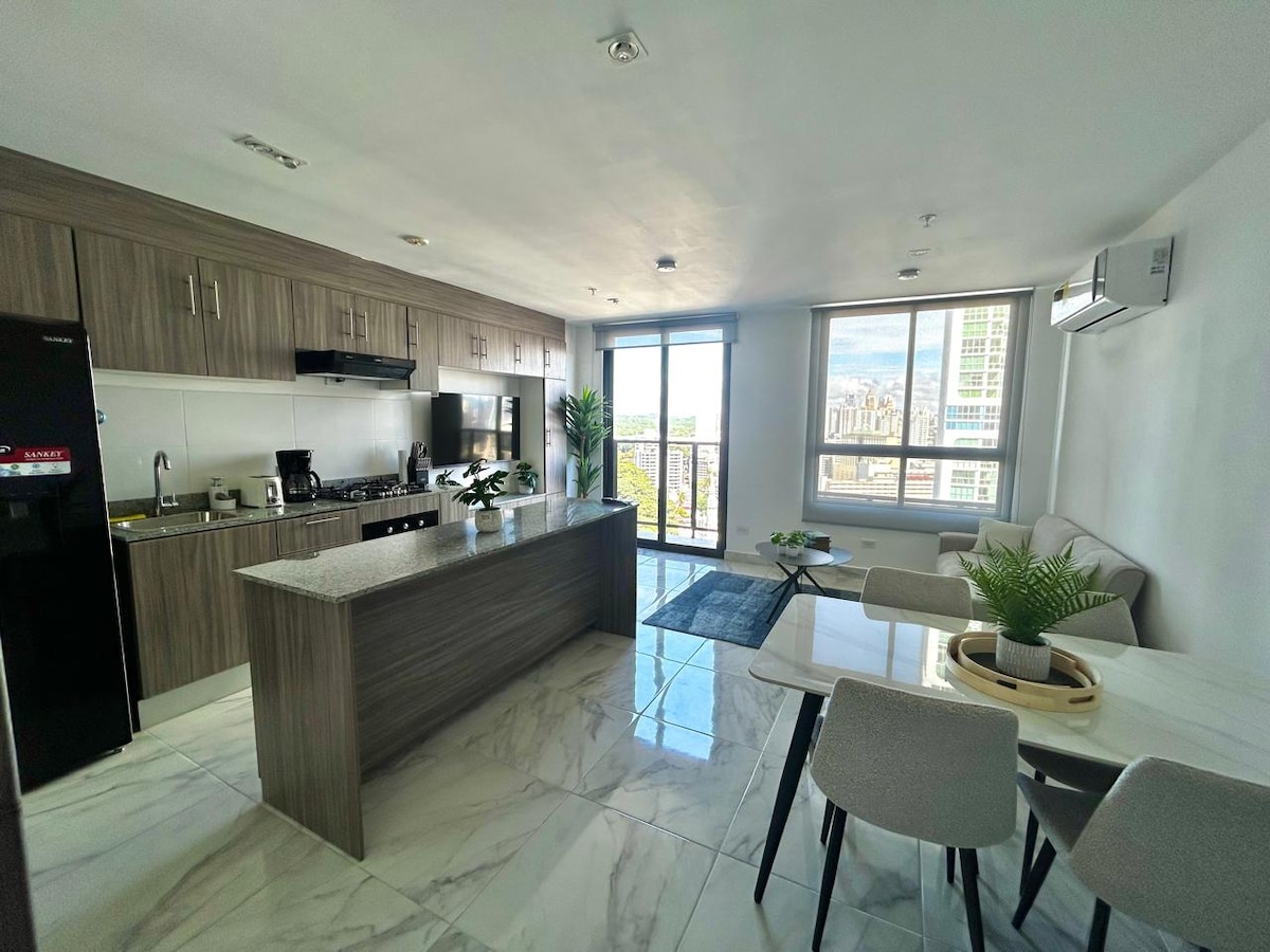 ➤ Centrally located in San Francisco, one of the best neighborhoods in Panamá City. Enjoy the high floor view from your private Balcony! FREE EARLY CHECK-IN (subject to availability) ★ Close to everything! Walk 5-10 mins to the Best Restaurants, Supermarkets and Multiplaza: the best Mall in Panamá Travel with the comfort of being in your home! in this new, high floor, modern and minimalist full apartment with top of the line appliances, which is great for personal/business or family enjoyment