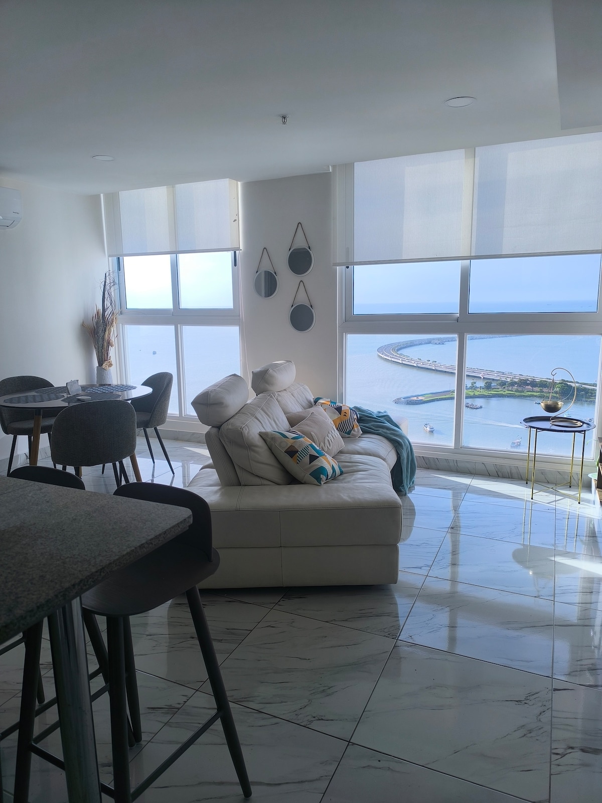 Wake up to breathtaking ocean views in this modern apartment on the exclusive Balboa Avenue. Enjoy an infinity pool, 360° sky lounge, gym, restaurants, coworking spaces, and unique entertainment options. Just steps away from the Historic Quarter, the Coastal Beltway, and the Seafood Market. Perfect for travelers seeking comfort, design, and Panama's most stunning views.