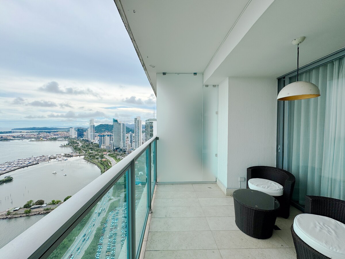 Apartamento contemporáneo en uno de los edificios mas lujosos de Panamá, ubicado en la Cinta Costera frente al mar, muy cerca de restaurantes, centros comerciales, cafe's, tiendas, supermercados y sitios turísticos de la ciudad Con su inmejorable ubicación y máximo confort, los huéspedes se pueden desconectar, relajarse y saborear este destino mágico que tiene su propio estilo, ademas de las instalaciones del edificio como Spa, restaurantes, gym, piscina, bar, billar, valet parking, entre otros