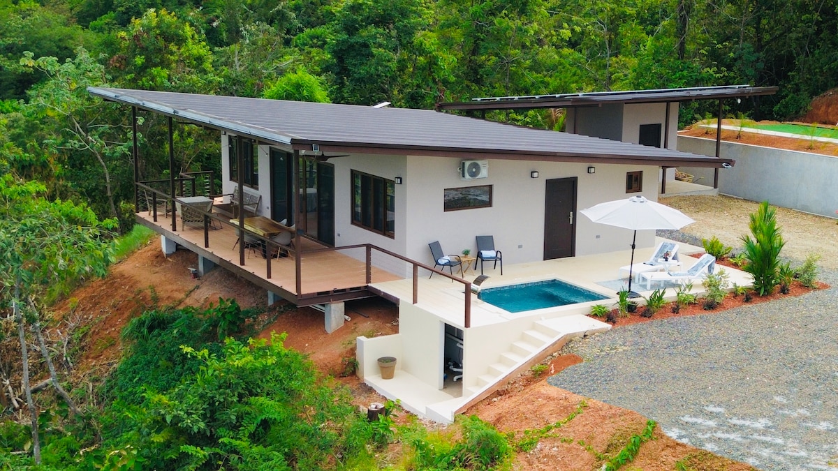 An open-style jungle home with mesmerizing treetop and mountain views. Located 10 minute walk to the beach, with a trail that leads to the River. The house is not childproof! It has three individual bedrooms, each with its own key. The price is based on the number of guests. The entire house is always yours. The house offers fiber optic WiFi and two dedicated workspaces. The property is surrounded by large trees, naturally keep the house cool and provide shelter for birds and wildlife.