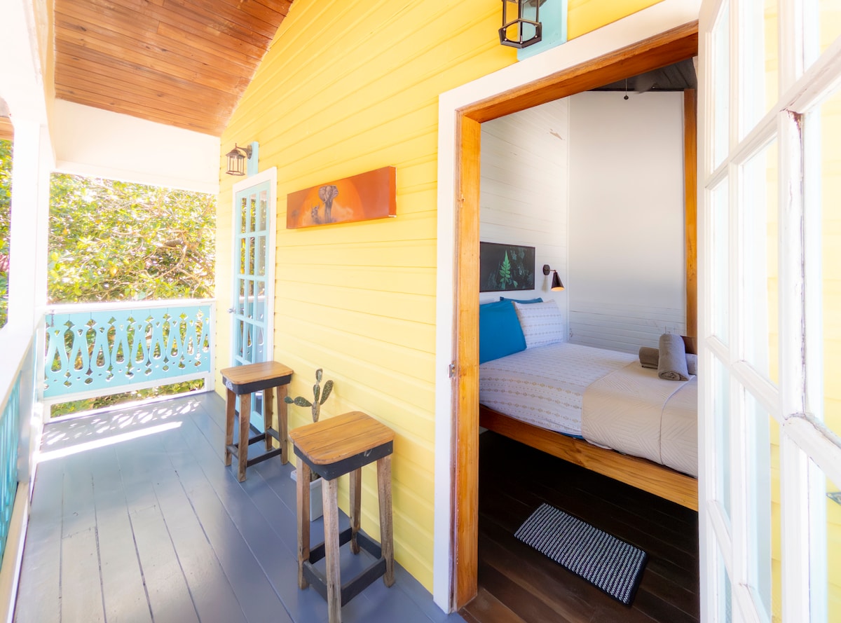 Casa de Mono is a unique colonial-style Caribbean villa in one of Bocas del Toro’s most sought-after areas. Just a short walk from top surf spots, it's ideally located between Bocas Town and Playa Bluff along the beach road—perfect for exploring Isla Colón. Surrounded by lush nature, the King Suite features A/C, an en-suite bathroom, a large private balcony, and an outdoor-style kitchen. Daily breakfast at local cafés is included to start your island mornings right.