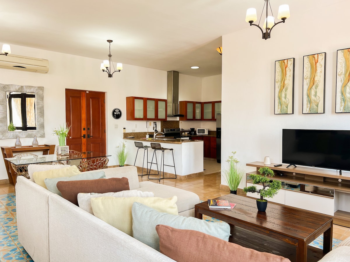 Nice apartment: comfortable, cool and relaxing... very comfortable beds available and a fully equipped kitchen with washer and dryer, ideal for long stays. Condo with 3 large swimming pools and one for children, volleyball court, barbecue area, facing the sea and with access to the beach. Good quality internet and cable service to stay connected and homeoffice, 15 minutes from Coronado where there are supermarkets and plazas. We accept Pets only for stays longer than 15 days...