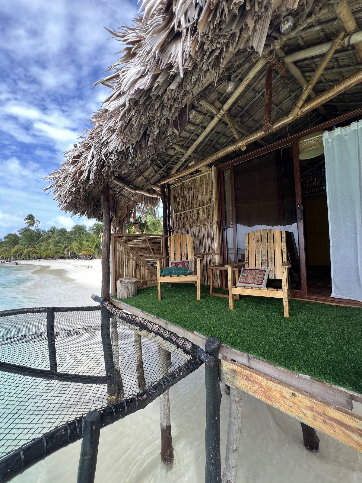 Beautiful Eco Beach House with luxury touches! Relax on your spacious private deck overlooking the coral reef. Snorkel right off the dock or hop into the warm water from your beachfront cabana. Be mesmerized by the vivid overwater sunsets in front, coconut grove on either side, and lush rainforest behind. Fall asleep to the tranquil sound of waves lapping below. Wake refreshed with coconut water from your own coconut grove. Our team looks forward to welcoming you! -GoGo, Mili, Mikel, Eimy, Baby