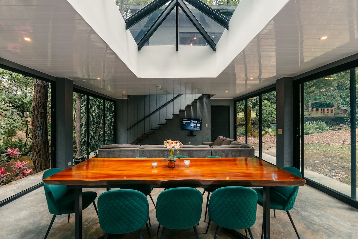 Spectacular contemporary style villa surrounded by local flowers and woods. The villas design enhances the relationship with the outside environment with panoramic windows which are found in the dining room and kitchen, this offers an awesome view of the mountains and green flora. The villa is located in a organic quiet farm, with abundant vegetation and great presence of birds.
