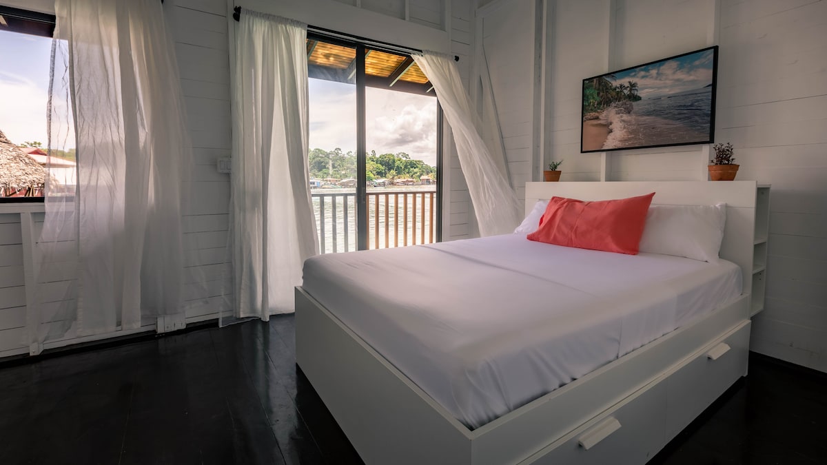 Perched over the water in Bastimentos Bay, this well-appointed four bedroom and three bath single family home combines classic Caribbean architecture with modern sensabilities. With over 2,000 sq ft of comfortably furnished spaces, there’s room enough for eight adults to spend time together - or apart - in any weather. BBQ poolside, stargaze from the hammocks, fish off the dock, walk to restaurants, or flag down a water taxi from your private boat dock for the ten minute trip to Bocastown.