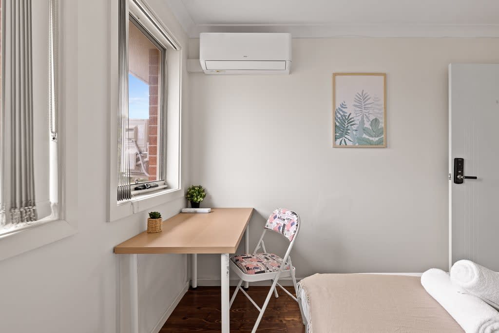 Welcome to your perfect stay in Bankstown! 🌟 Just a 12-min walk to the train station, Bankstown Central, and the Sports Club, this cozy retreat places you in the heart of Sydney’s vibrant southwest; a multicultural hub famous for its delicious international cuisines! 🍜 🏡 Perfect for up to 4 guests, this unit offers: ❄️ Split air conditioning 🌿 A private balcony 🚗 Street parking available nearby Plus, you're only a 12-minute drive to Bankstown Entertainment Park for even more fun! 🎉