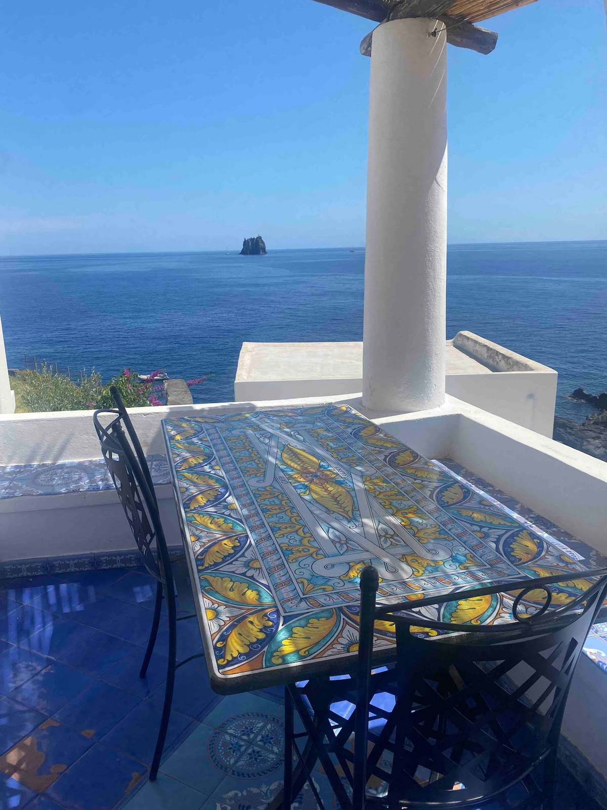 Bellissima casa indipendente completamente a picco sul mare. La peculiarità è la terrazza che offre una vista stupenda sul mare infinito e tutte le Isole Eolie. Si ha sensazione di essere in una nave. Situata nel cuore del villaggio a pochi minuti dalla scogliera balneare. Composta da due camere con l'accesso individuale e con balcone vista il vulcano. Ideale per due copie di amici, famiglie o due persone con la propria camera privata. Il bagno si trova sulla terrazza ed è a uso esclusivo.