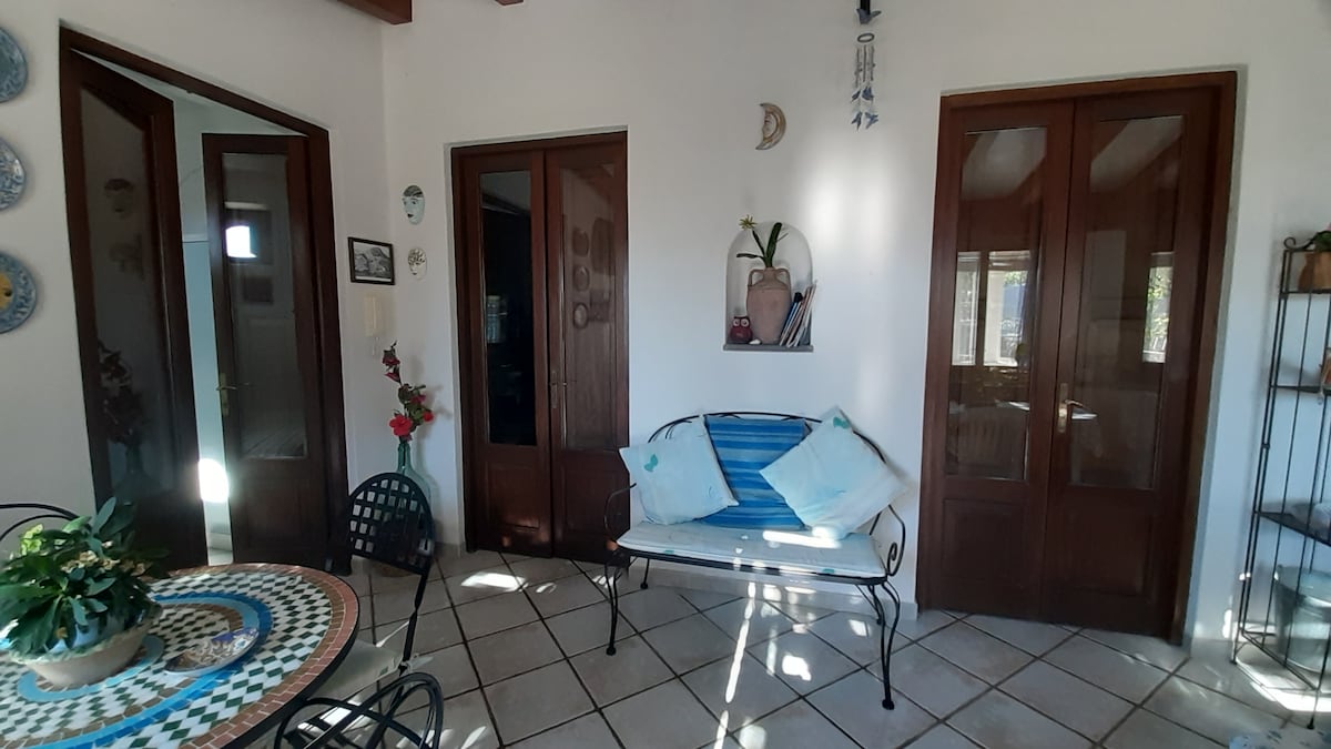 The house is located in the area called 'Cappero'. The house was originally built in 1900 and was refurbished in 2012. It is a traditional Aeolian style villa. Facing the front yard is a wooden awning supported by Aeolian style pillars called 'pulera'. The seafront terrace overlooking the Vulcano Island is surrounded by a low-rising platform called 'bisola' delicately adorned with Sicilian ceramic tiles. The house is surrounded by 1500 square metres of garden space.