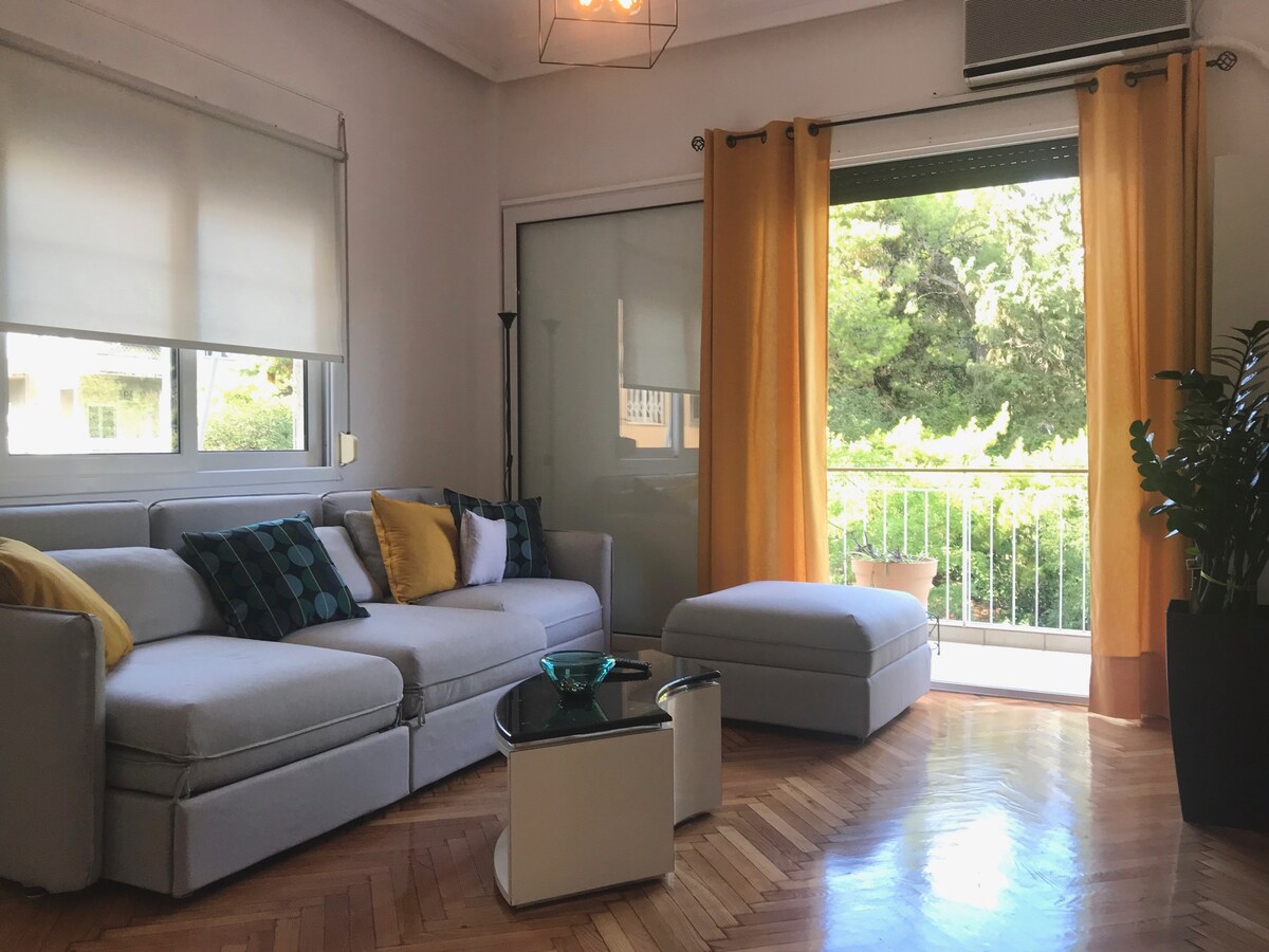 Great 2 bedroom condo on 2nd floor (elevator), in fashionable Pangrati near museums and art galleries, the ancient Olympic stadium and downtown, great local restaurants, cafés and amenities. Tastefully furnished and decorated with original art, fully independent central heating & air conditioning for year-round comfort, mosquito screens, luxury bedrooms and modern bathroom. Sunny balconies, dining area, cable TV & Netflix, full kitchen with top appliances including washer/dryer. A lovely home!