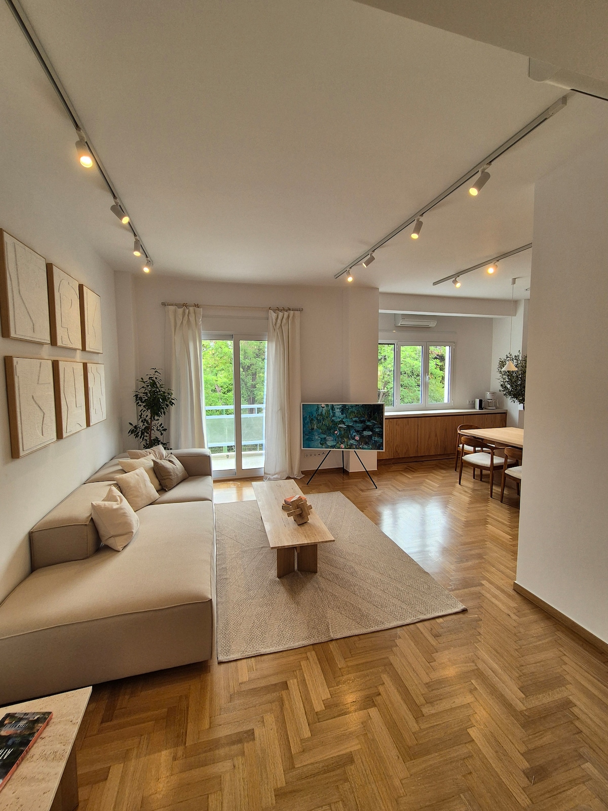 The Veranda is a luxurious, high aesthetic and modern 2 bedroom aprtm. with a super spacious, long and shaded veranda. Ideal choice for couples, families, solo and business travelers seeking absolute comfort. Located in one of the most beautiful and safe areas of Athens, next to Panathenaic Stadium, 4 minutes walking from the Presidential Mansion and the National Garden, 8 minutes walking from Kolonaki sq, 12 minutes walking distance from Syntagma square and in walking distance from Acropolis