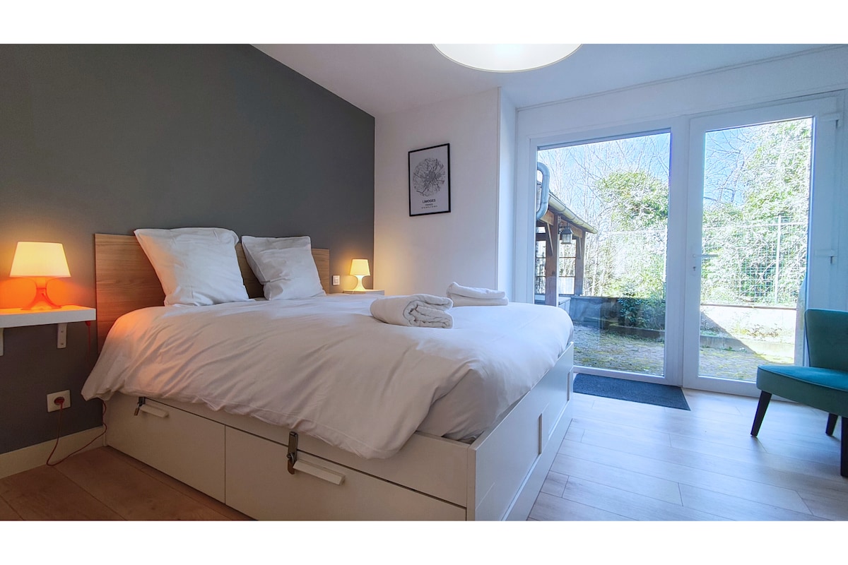 Voici les innombrables points forts de votre appartement : -Logement entier de 35 m2, entièrement rénové et décoré avec goût (enfin je l'espère) -Un lit Queen size de 160*200 neuf -Terrasse et jardin privatifs (quoi de plus agréable qu'un petit café en terrasse chez soi) -Proche de la gare (10 min à pied pour les sportifs, 2 min en voiture pour les moins sportifs) -Wifi disponible (pour le télétravail, je vous ai mis un bureau, mais je sais que vous irez en terrasse) - Souriez, c'est à vous!