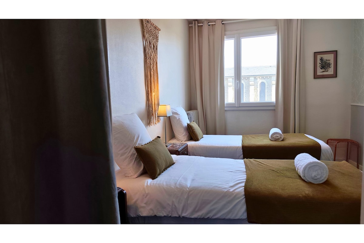 Appartement tout confort centre-ville avec vue sur les toits de Limoges. Profitez de deux chambres dont 1 modulable (lit double ou 2 lits simples) selon vos besoins. L'atout rare : un parking privé gratuit pour un séjour 100% à pied en toute sérénité. Le mix parfait entre le calme des sommets et l'effervescence de la ville à vos pieds.