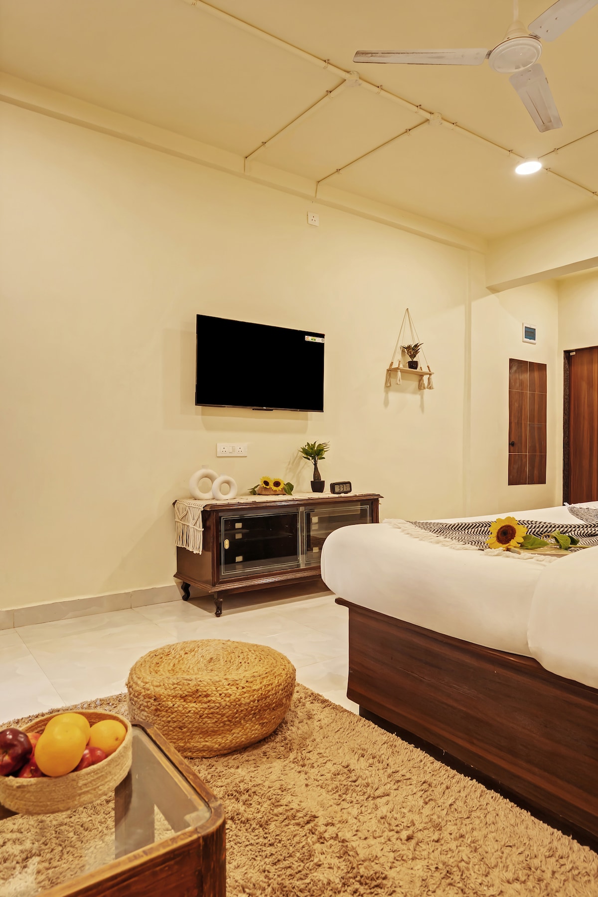 Retreat to our peaceful farmhouse, only 10 minutes from Panchgani. Perfect for families and small groups, our farm offers a serene escape surrounded by nature. With 2 big bedrooms and a kids room, this is a comfortable farm home for 4-6 guests. Wander through vibrant orchards, pick fresh strawberries and papayas, and meet our friendly farm animals. Close to town yet enveloped by greenery, it’s the perfect nature getaway. Reserve your stay today!