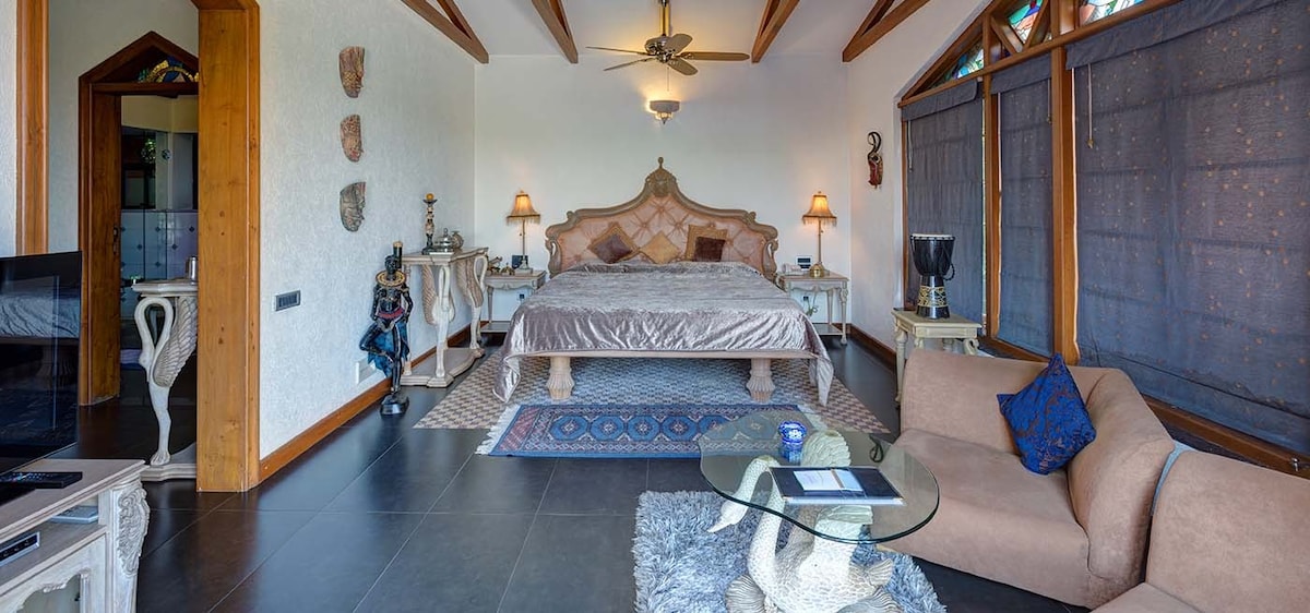 Our majestic family home seamlessly blends old-world charm and modern conveniences. A lush and lovingly nurtured garden is laid out in our villa's courtyard. It’s hard not to feel at peace when you're surrounded by flowers, mountains and the sounds of nature. There is an outdoor play area with swings for children. The villa is made up of two adjacent villas of 6 BHK & 4 BHK which are right next to each other on the same property.