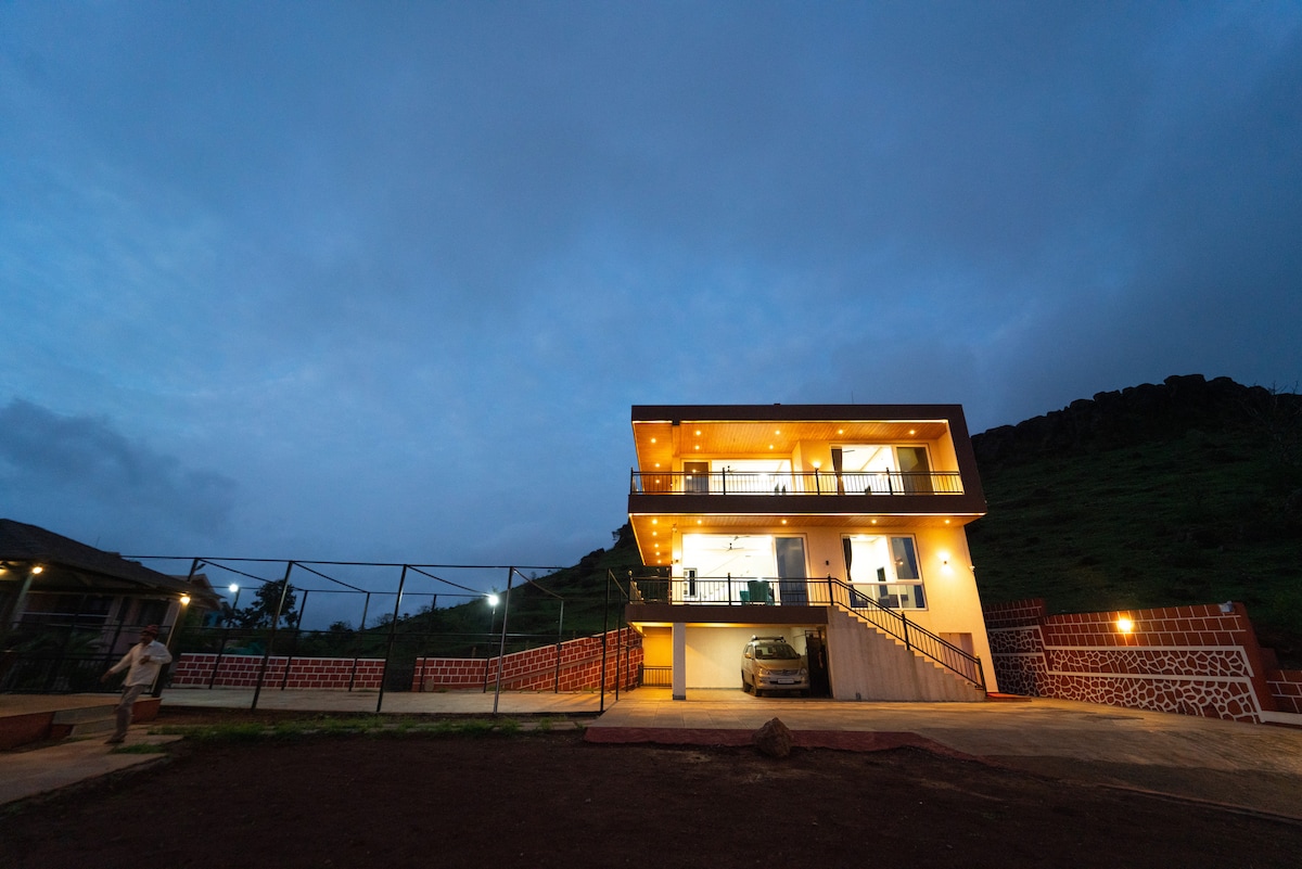Viharika Villa – Mountain Views, Open-Air Jacuzzi & Comfort for All Escape to Viharika Villa, a peaceful hillside retreat offering stunning Sahyadri mountain views, a private open-air jacuzzi, and all the comforts of a stylish home. Perfect for families, couples, or small groups looking to relax in nature without compromising on comfort 🛁 Your Private Jacuzzi Experience: Step into your open-air jacuzzi and soak in the calm, surrounded by the majestic Sahyadris. 🏕 Play area available for kids