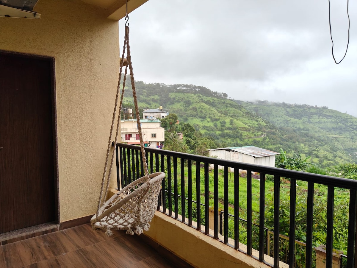 Perched on a cliffside with sweeping valley views, our cozy home is the perfect escape for a group of four to relax, recharge, and reconnect with nature. Step outdoors to enjoy your morning coffee in the gazebo, or unwind with a bonfire on winter evenings. In monsoon, explore nearby treks and waterfalls just a short distance away. The home has parking on premises, accommodation for drivers nearby. We also offer home-cooked meals for an extra charge, and can accommodate additional guests.