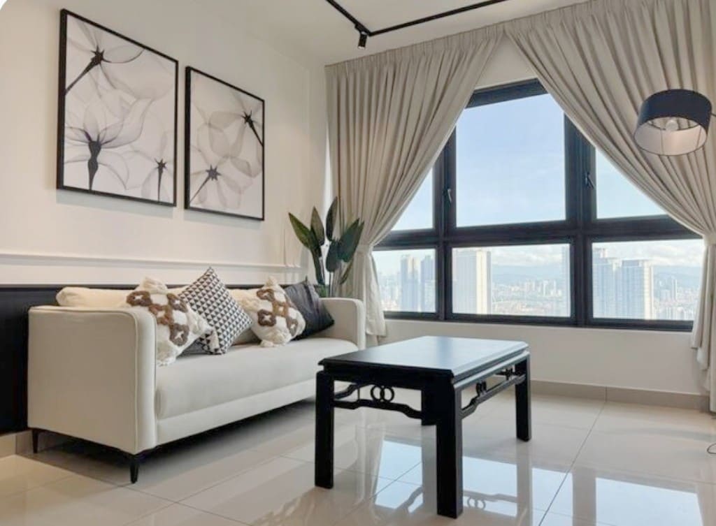 Sit back and relax in this calm, stylish space. Why Seashell suite at Lucentia Residence - Best views of KL - Beautifully decorated with a fun spirit - Centrally located & attached to public transit hub - Fast wifi - 2 TVs with Netflix & others - 2 gorgeous pools - Family friendly with baby crib & highchair - Gym, pool table, BBQ pits, piano - Garage parking - Recommended to Sleeps 6, max 8 person - LaLaPort Shopping Mall & the WOW entertainment street are attached - Grocery, drug store & Cinema