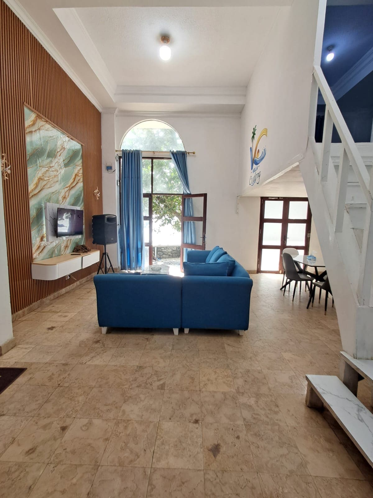 Penginapan di wilayah Carita tepat di pinggir pantai. Dengan space yg besar muat untuk keluarga. Terdiri dari 2 kamar,ruang keluarga, dapur, kamar mandi,tv dan sound karaoke