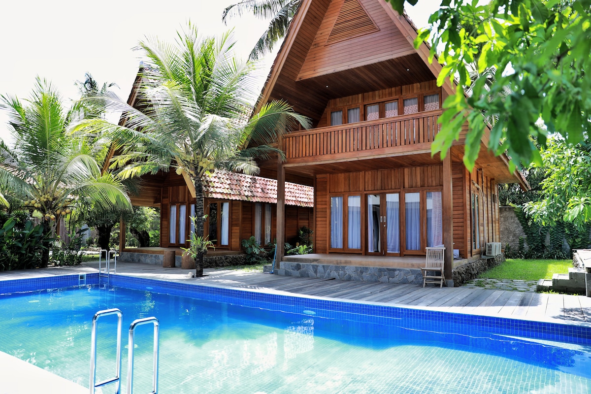 We provides a sense of well-being and familiarity, even when you are not actually at home. Otanaha 2, Wooden house with traditional architecture, luxurious & relaxing experience with large private pool/close to the beach, 5 minutes to the Batu Karas Beach/a lot of amenities/Rental Services (Car, Hi-Ace, motorcycle, bycycle, ATV, Jet Ski)/Private Chef & Butler Service/Indonesian & Western Fusion Food