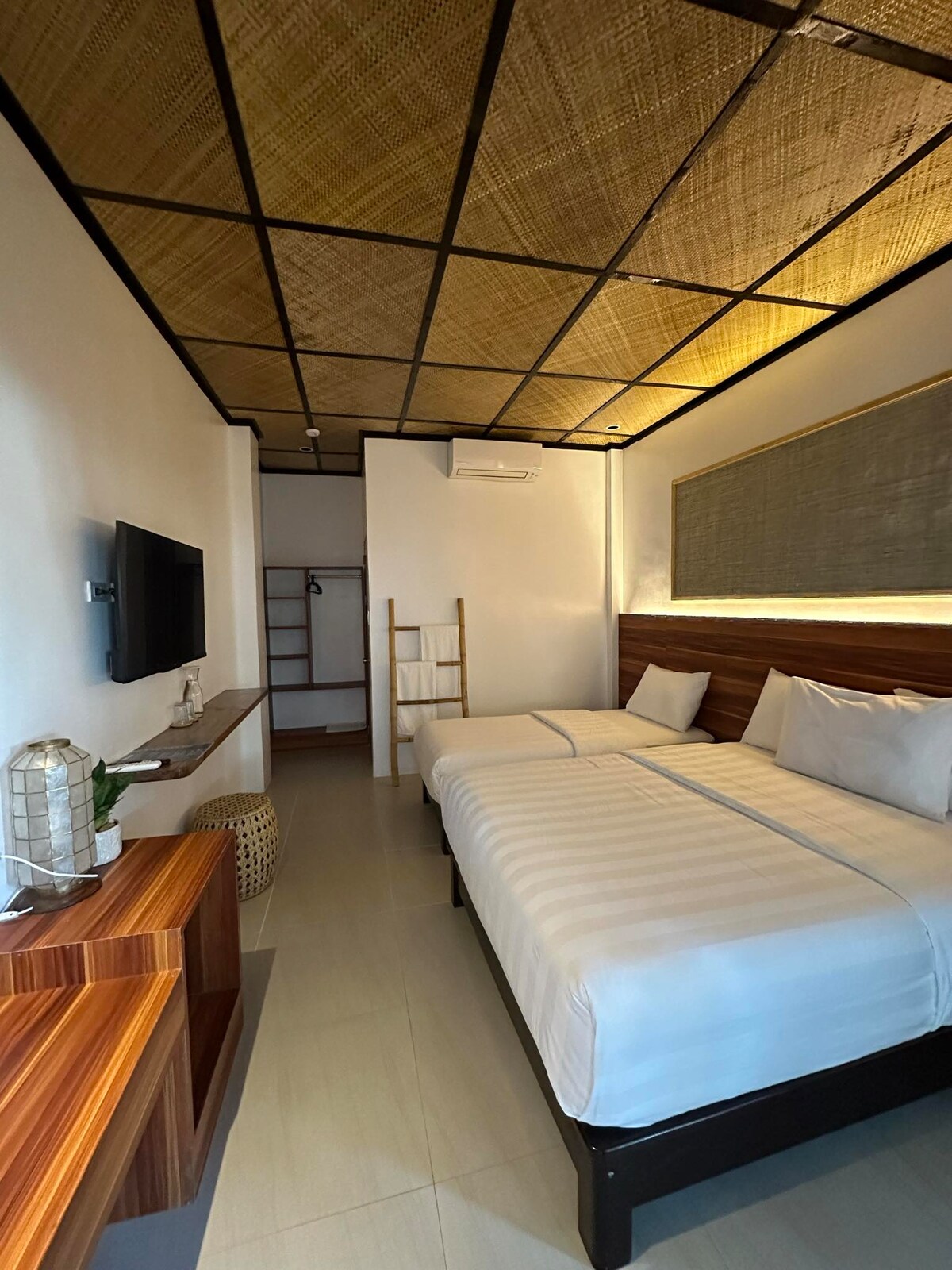 Bright and cozy room with a beach-inspired design, perfect for your island escape! Features two comfortable double beds, air conditioning, and wooden furniture. The charming decor includes sea-themed wall art. Ideal for relaxation or as a base to explore Bohol Island’s pristine beaches and marine life. Enjoy a serene, stylish stay in paradise!