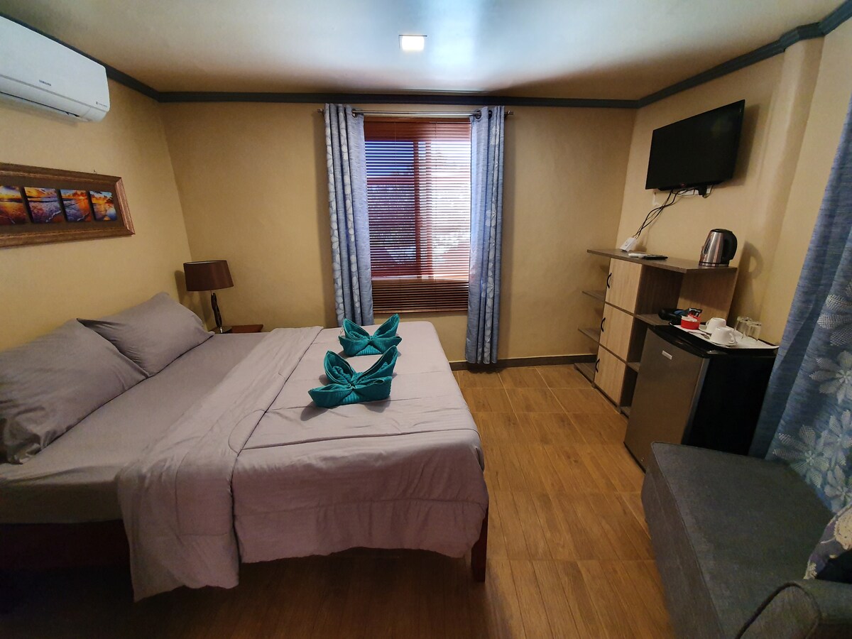 These rooms accommodate up to a family of 3. Includes WiFi, Hot/Cold shower, TV with cable, and AC. Free breakfast and airport transportation. Room service and laundry service available.