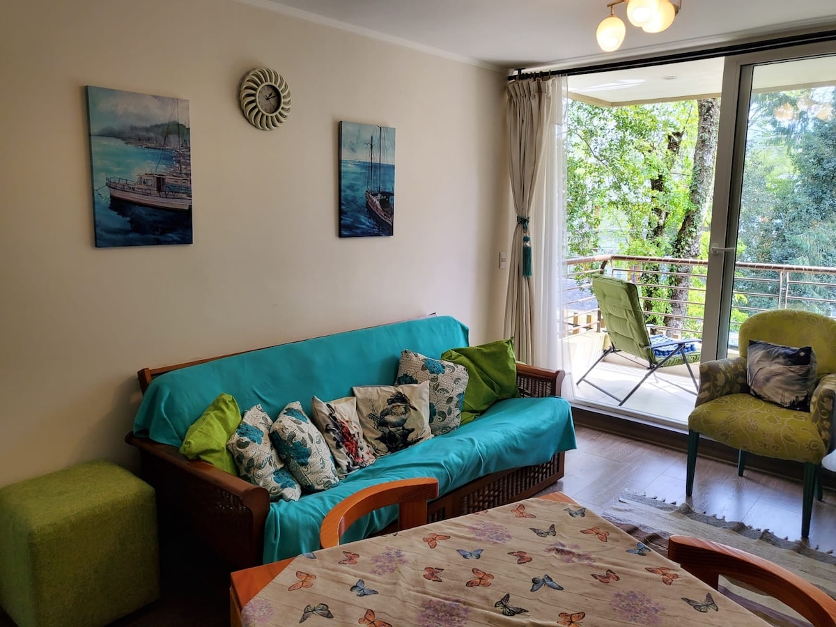 Departamento tipo estudio , en un ambiente tranquilo y natural pero sólo a 5 minutos del centro de Pucón. WIFI fibra óptica 500 megas. Estacionamiento privado, seguridad 24/7, piscina interior y exterior (disponibles según temporada) , quincho, sala de eventos y lavanderia comunitaria Ropa de cama y toallas limpias al momento de tu llegada. Nos preocuparemos de que todo esté listo para tu llegada , solo preocúpate de disfrutar.