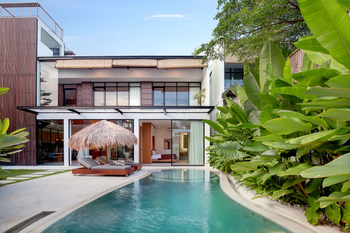 ★ Special free airport pickup —luxury villa steps from Canggu’s famous Echo Beach ☞ Designer villa ☞ Walk to beach, cafes, dining, spas & beautiful boutiques ☞ Surf + private access to the beach ☞ Pool & indoor/outdoor lounge ☞ Full kitchen ☞ AC in all bedrooms ☞ Private maid ☞ Fast Wi-Fi ☞ Free Airport Pickup with 3-night minimum stay 1 min → Echo Beach (swim, surf, cafes) + World Class Waves 1 min → Shelter Restaurant & La Brisa Beach Club 1 min → Baked Canggu’s best cafe