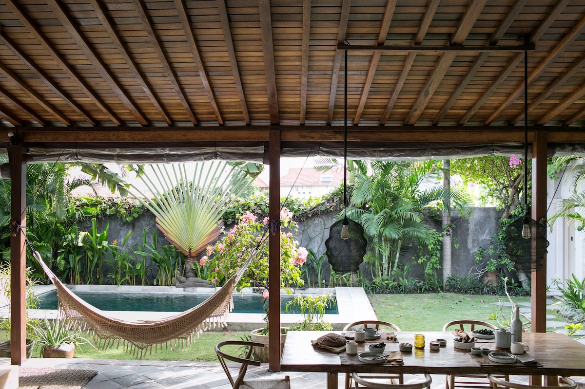 Tranquility at the heart of Bali's best night & day spots. Berawa Beach, Canggu Two Private King Sized bungalows & ensuites, nestled in lush tropical gardens. Enjoy privacy & shared amenities like a pool, lounge & kitchen. A short walk to top Surf Spots, Restaurants, Finns, Atlas, & more, making a perfect mix of relaxation & fun. Ideal for creative rejuvenation and inspiration. Other Spaces airbnb.ca/h/Joglo1 airbnb.ca/h/joglo2 airbnb.ca/h/2upstairs airbnb.ca/h/wholevilla