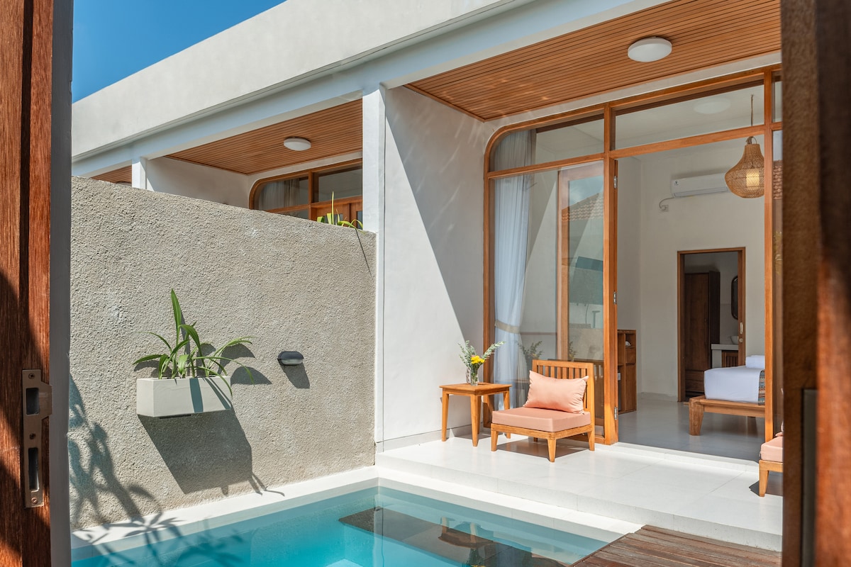 Cómoda, Your Seminyak Sanctuary Set steps away from Seminyak’s vibrant main street, Cómoda offers a serene escape blending comfort and simplicity. Unwind in your sun-kissed terrace and private pool, perfect for couples, Groups of Friends, or just you for a peaceful retreat. Experience the tranquility and accessibility to Seminyak best Attraction. Adult-only stay