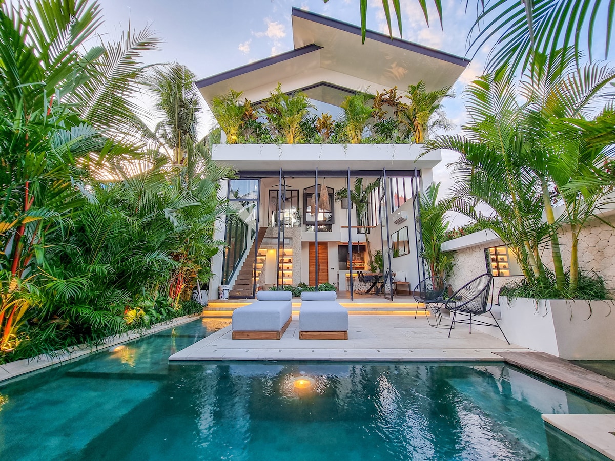 Welcome to your modern Bali hideaway! Elva Villa 3 is a stylish two-story retreat nestled in tranquil Seseh – just 600 meters from the beach 🏖️ and a quick 15-minute scooter ride to lively Canggu. Part of an exclusive 6-villa complex, it blends tropical serenity with upscale design. Perfect for couples or holiday seekers 🌴 looking to relax in comfort. Enjoy your private pool, dine al fresco at sunset, and unwind in your personal paradise.