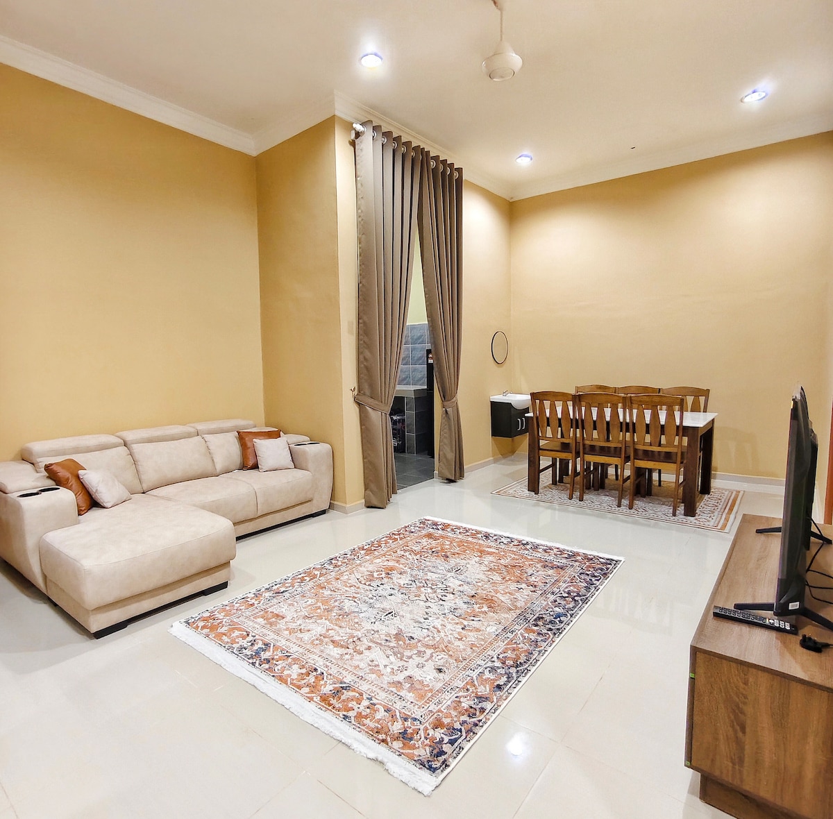 Welcome to Calme Luna Suite, with 4 bedrooms and a stunning front-facing pool. Located just a short distance from Kuala Terengganu's city center and attractions, our home offers the perfect blend of luxury and comfort for your getaway. Step inside to discover a modern interior with ample indoor and outdoor spaces designed for relaxation and socializing. The open-plan living area is perfect for family gatherings, featuring comfortable seating and a dining area where you can enjoy meals together.