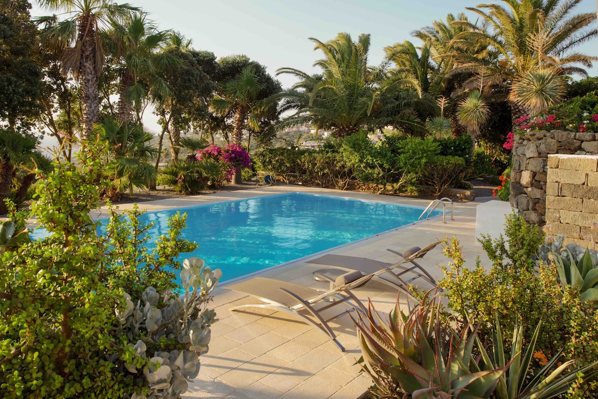 La Palma & La Luna is a sea-view Dammuso with pool, located on a panoramic promontory near Scauri . The villa has been completely renovated to give elegant interiors and total privacy. The Dammuso features 1 Double Bedroom with ensuite bathroom, an open-air courtyard, pool, and panoramic view. Its unique location and stunning Mediterranean garden of over 2 hectares ensure maximum privacy and tranquility. The whole property is RENTED EXCLUSIVELY for you.