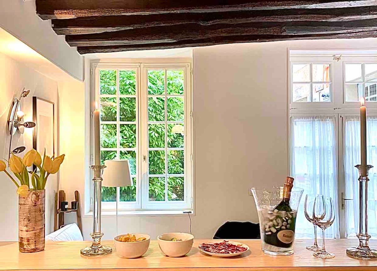 Luxurious and intimate, this secluded urban oasis is tucked away on a residential street in bustling Bastille, one of the most authentic and hippiest areas of Paris. Surrounded by some really good restaurants, farmer markets, designer stores and art galleries, it offers all the amenities you would find in a 5-star hotel, including a secluded private outdoor patio with its lush greenery. Famous Place des Vosges and Le Marais are just a short walk away.