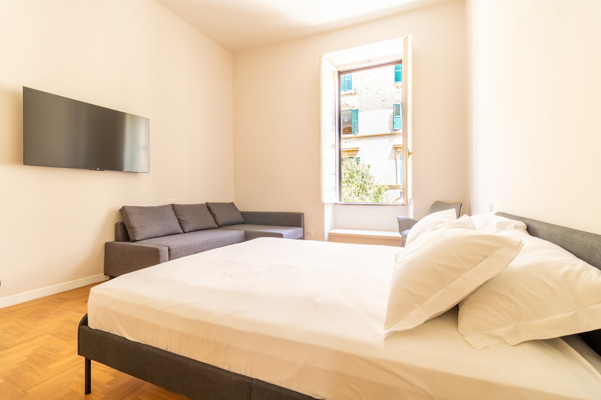 Located right in the heart of Rome’s historical centre, refined sunny triple/double room in cozy apartment, with air conditioning, private bathroom and shared kitchen. Coliseum and Domus Area are only 1 km away, as for Baths of Caracalla and Circus Massimo. The apartment is excellently connected by subway (line A) or main bus lines and it's located in one of the best neighborhoods of Rome including bars, restaurants, shops and green areas. The best choice for your travel!