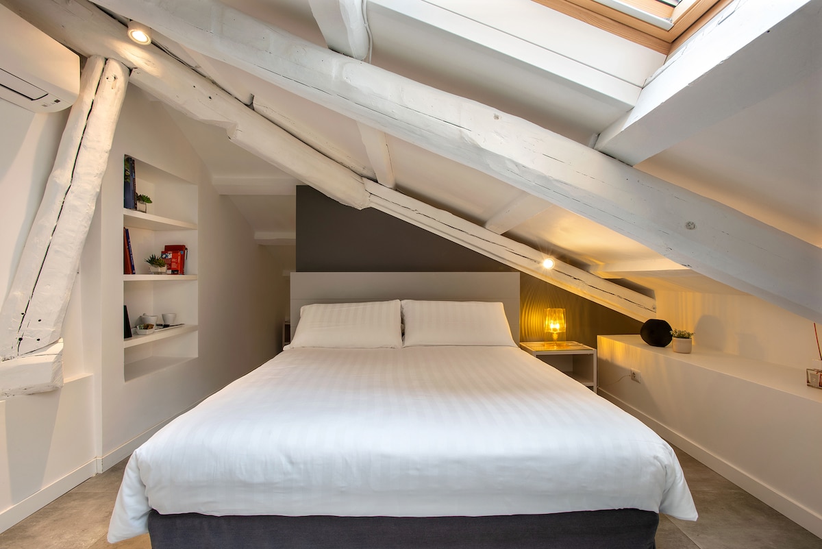 Tha Flat is located on the third floor of Gonfalone6 Building, distinguished by its elegant attic. Recently constructed, it is fully equipped with a kitchen, a bathroom with a shower, a space for luggage storage, and a comfortable double bedroom. Access to the apartment is made even more enjoyable by an exclusive terrace for all guests of the Building. Here, tables are set up to allow for a break at any time, making the stay even more enjoyable.
