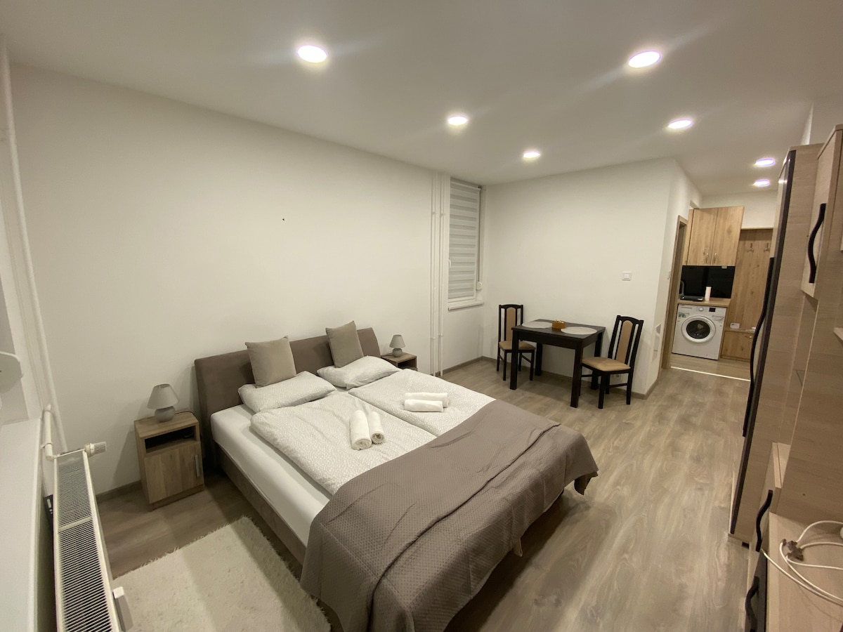 Cozy Apartment in Central Nyíregyháza Enjoy your stay in this charming 3rd-floor flat on Vécsey Street, just minutes from the city center. Shops, restaurants, park, and playground are nearby; train and bus stations are easily accessible. Features a comfy bedroom, spacious living room, fully equipped kitchen, free WiFi and Netflix. Ideal for 2 guests, but 3 can stay comfortably. Book now and discover the best of Nyíregyháza!