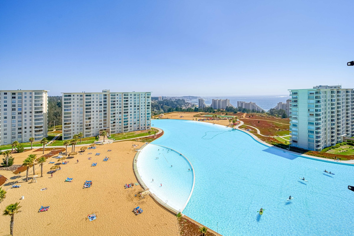 Departamento con vista panorámica. 3 habitaciones, 2 baños, 2 estacionamientos y cocina equipada. Incluye: • Wifi • 2 kayaks • 2 bodyboards • Parrilla Máximo 6 personas. El recinto tiene canchas, juegos, restaurantes y una de las piscinas más grandes del mundo para navegar y practicar deportes acuáticos. Piscinas para baño disponibles: • Fines de semana (31/10-08/12). • Todos los días (14/12-15/03). • Festivos todo el año. Piscinas temperadas y jacuzzi exclusivos para propietarios.