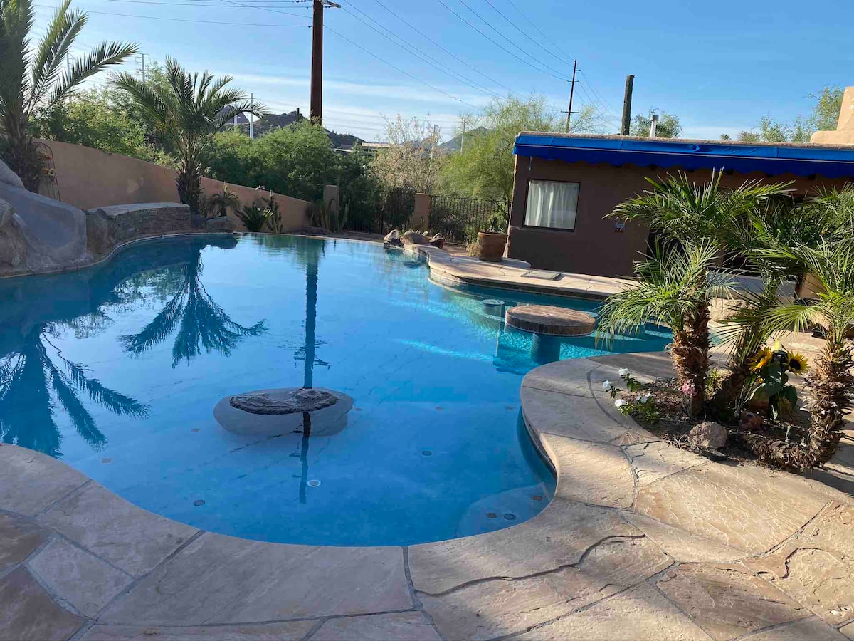 Welcome to our enchanting Palm Peak – an oasis of tranquility and mystery nestled in a lush and peaceful environment. Our fully furnished guest suite is a haven for those seeking a unique escape with a twist of adventure. Conveniently located just minutes from Papago Park, The Beautiful Desert Botanical Gardens and the Sky Harbor Airport. Everything you would need during your stay is right at your fingertips!